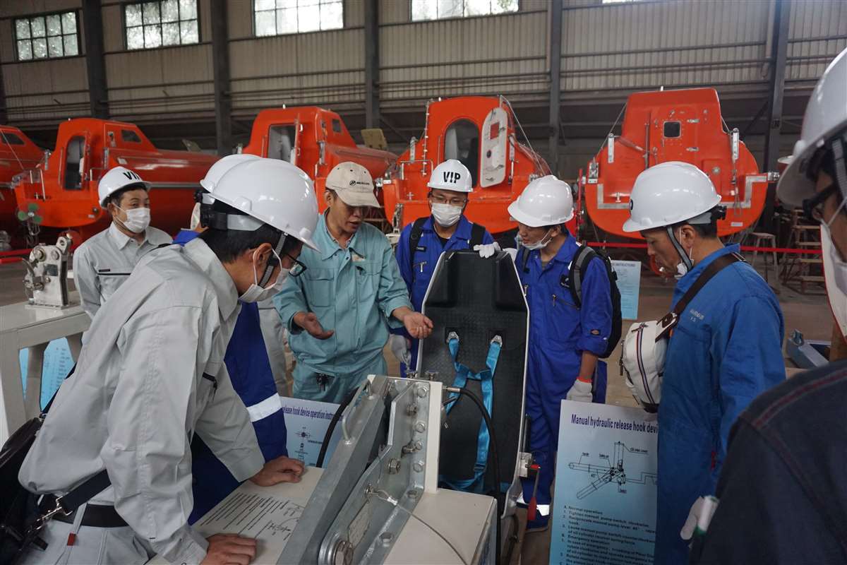 来自MANSEI INC/MARINAIR LIFERAFT CO., LTD/NISHI-NIPPON FUJIKURA CO., LTD/MOL ENGINEERING CO., LTD /SHIPGUARD INC共11名船舶服务精英人员来到B体育在线登录,对厂家设备的新设计,新产品进行深层次的学习和服务训练,成为佼燕救生设备的优秀服务商,为佼燕的客户提供更优质,更专业,更及时的服务.