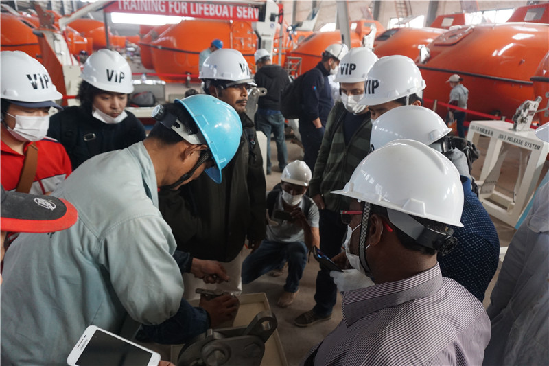 船舶服务精英人员来到B体育在线登录,对厂家设备的新设计,新产品进行深层次的学习和服务训练,成为佼燕救生设备的优秀服务商,为佼燕的客户提供更优质,更专业,更及时的服务.